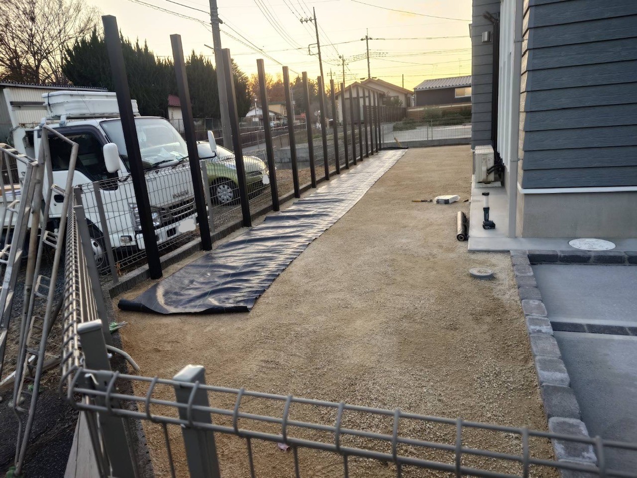 お家の建築工事前に先行して境界ブロックの施工を行います。