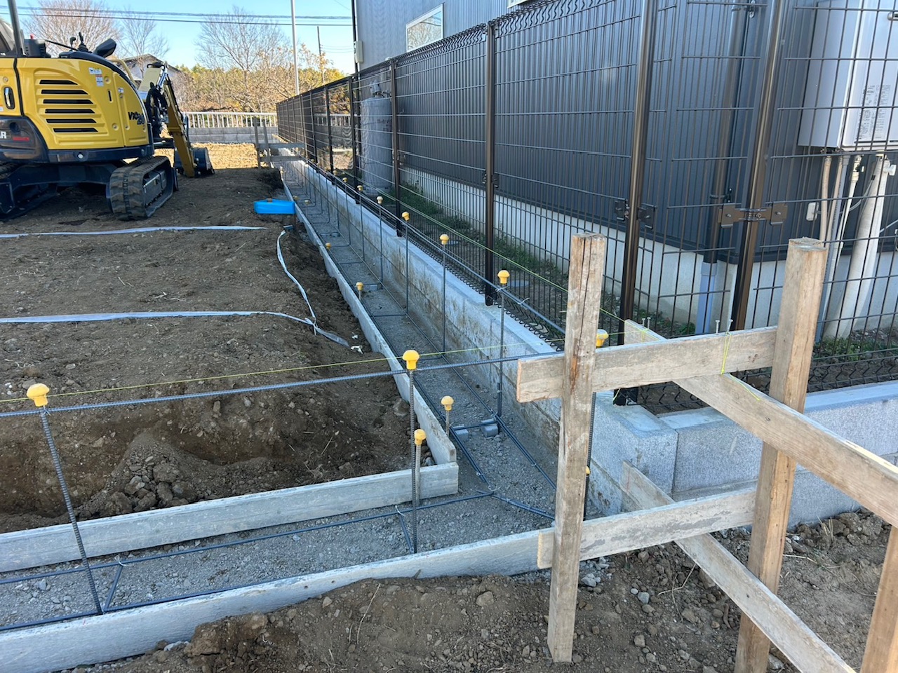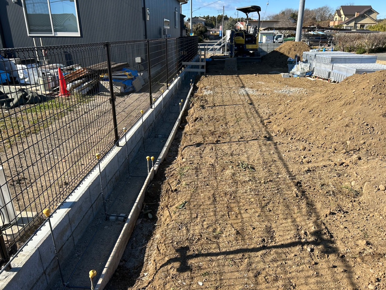 お家の着工前に境界ブロック工事を先行で行っております。