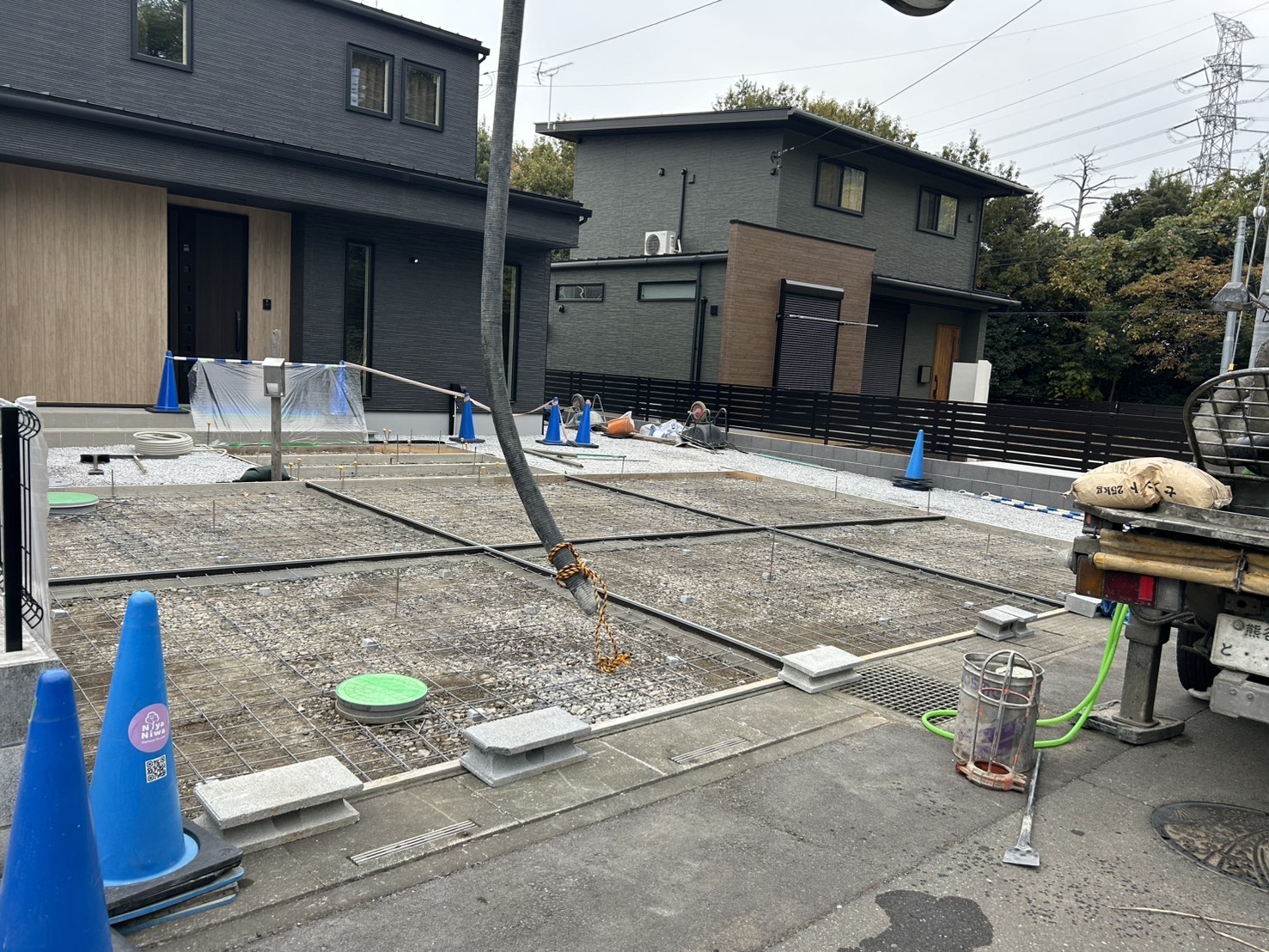 着工までお待ち頂く間、駐車場に砕石を敷きました。