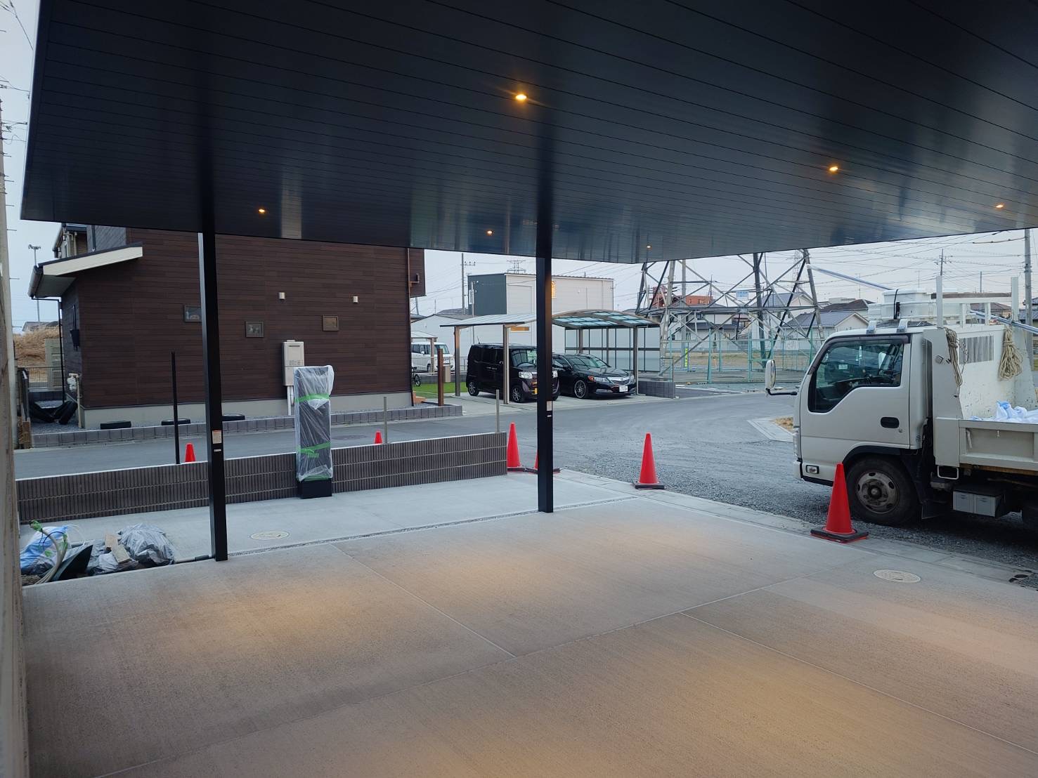 人気のカーポートSC2台用にダウンライト6基設置しました^^