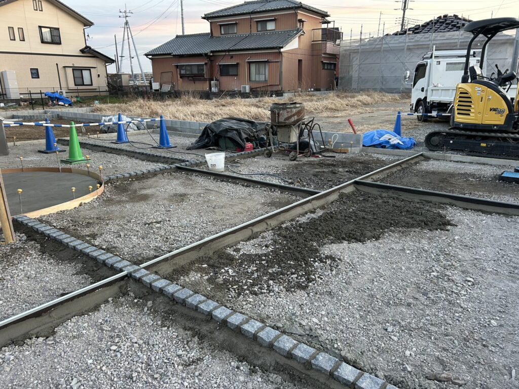 熊谷市の新築外構工事です。 東洋工業:シャルドブリックぺイブ お家の雰囲気にバッチリあいました^^ ーーー 目隠しフェンスの柱も設置しましたので、根巻きコンクリートと土間コンクリート打設を同時に行います。 ドッグラン用の […]