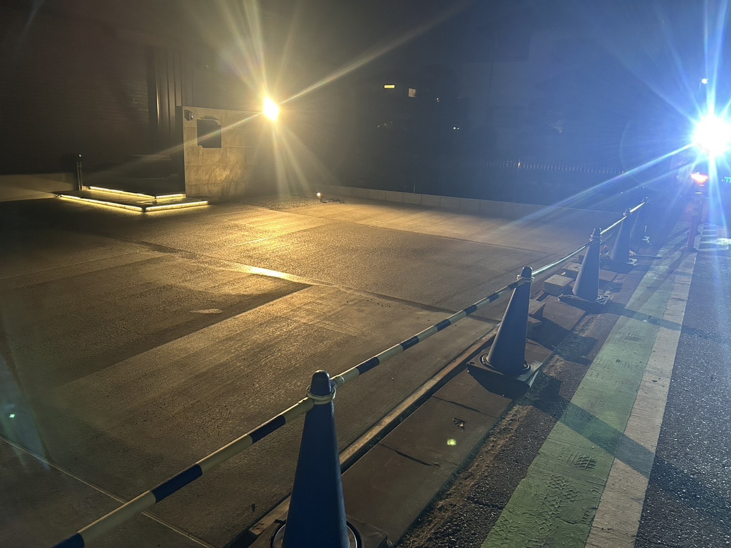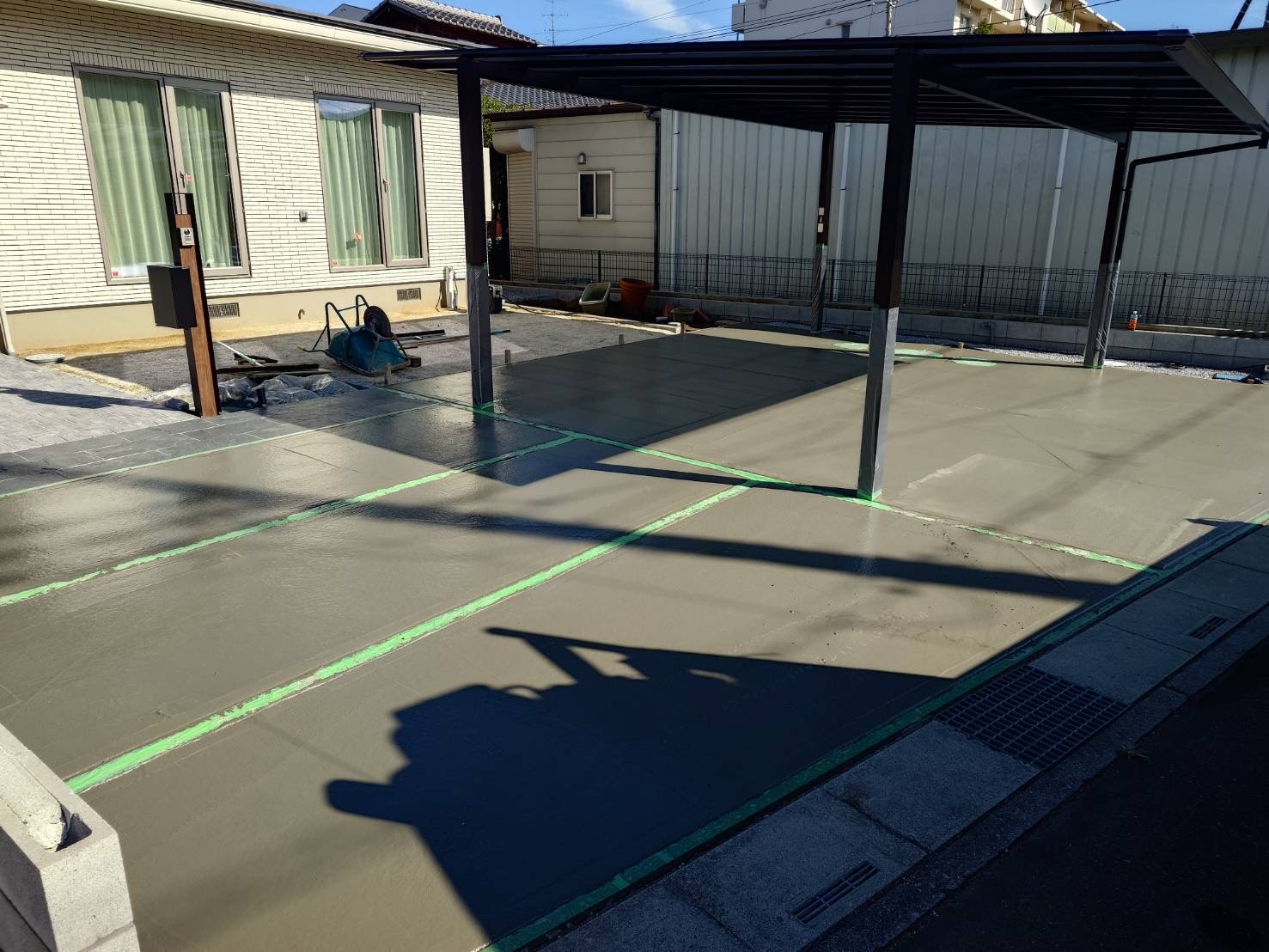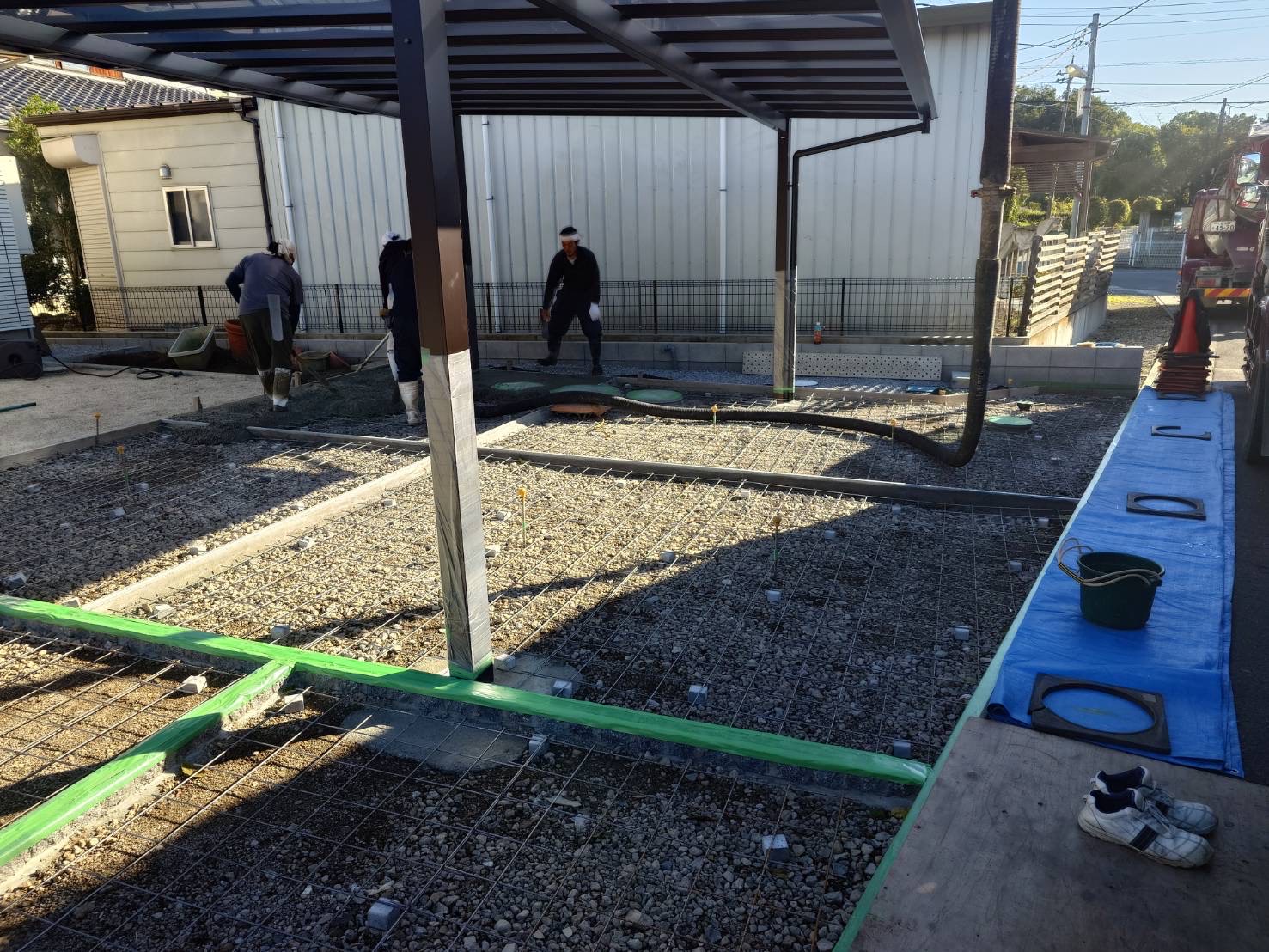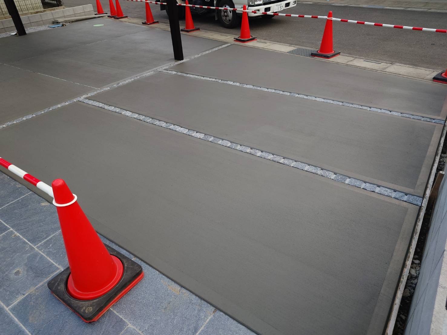 お客様の生活動線を確保する為と、刷毛引き仕上げが綺麗に仕上がる様に2回に分けました^^