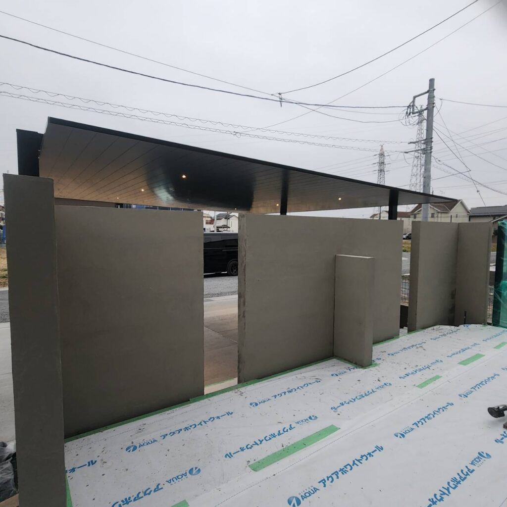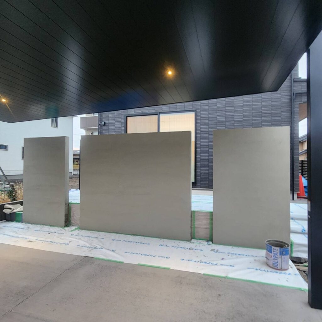 アウトドアリビングとなるタイルテラスの目隠し擁壁下地です。
