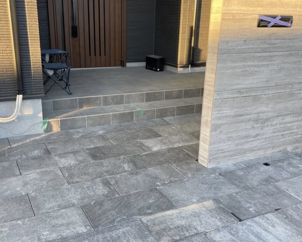 アプローチは天然石タイルです(^^)/ アプローチ部分【オンリーワン:ノワール ペイビング】 門柱【タカショー:セラウォールRC杉板】 門柱はタイル門柱です!(^^)! アプローチは目地入れをして完成になります♪ <熊谷 […]