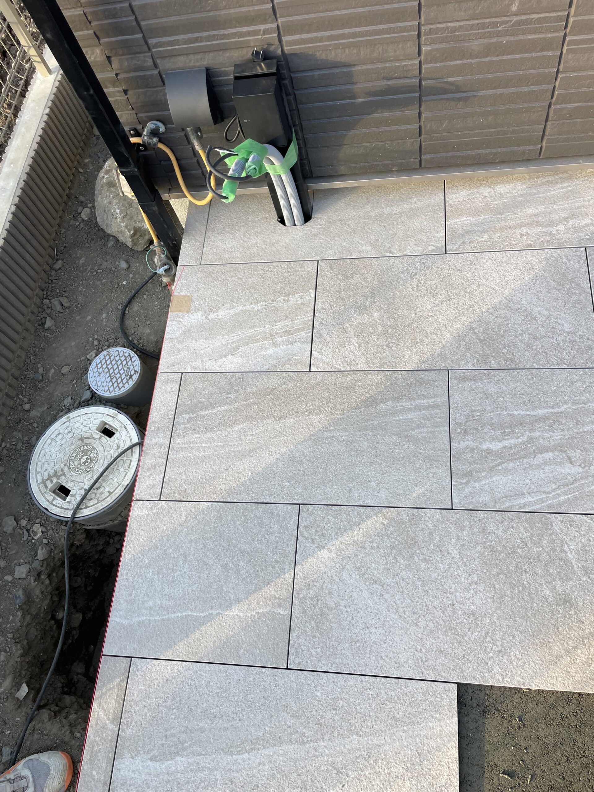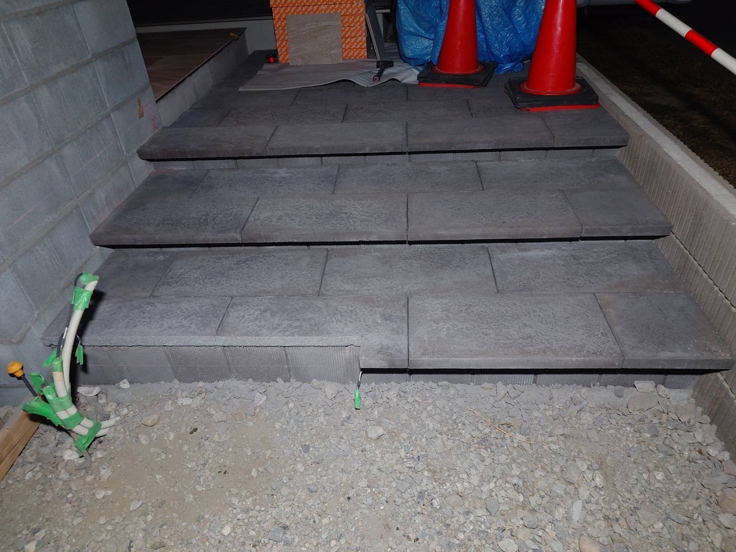コンクリート平板の階段とタイルテラス