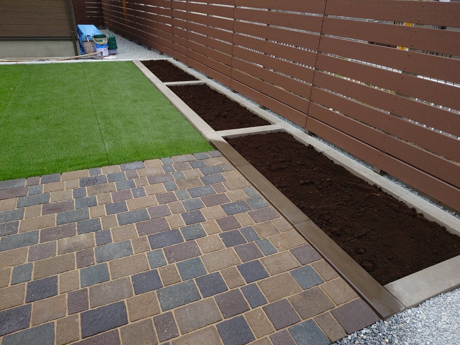 目隠しフェンスの手前に家庭菜園をつくりました^^