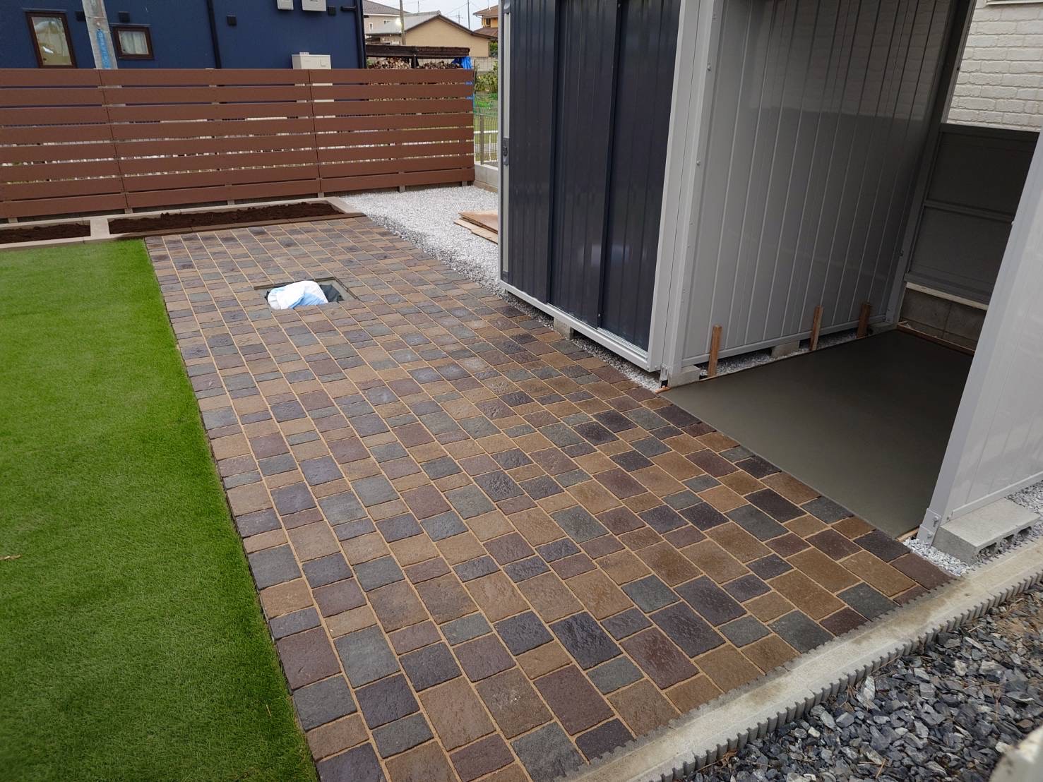 テラス部分のインターロッキングは